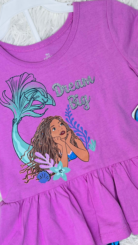 Conjunto 2 piezas morado The little mermaid 3 años